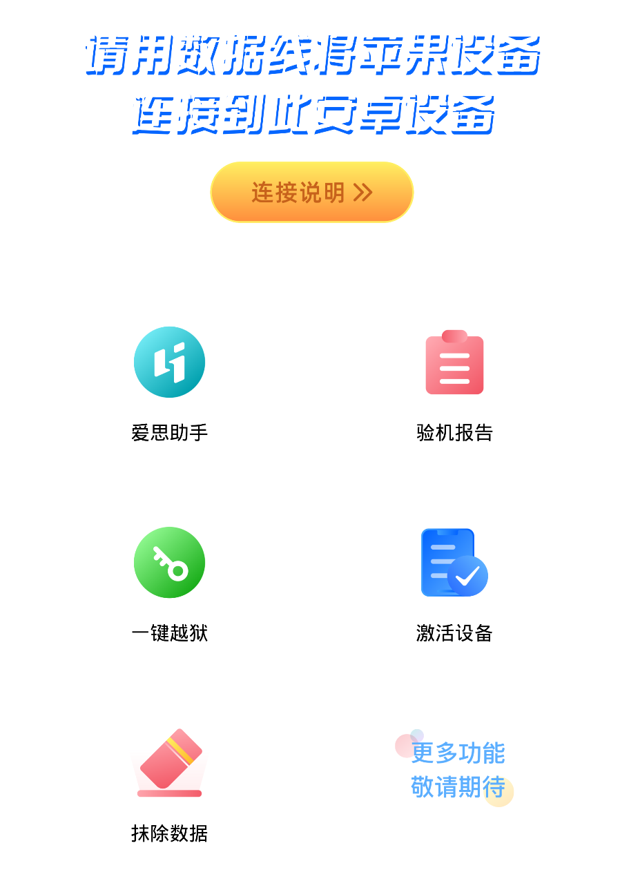 ✅ 功能有:验机报告,激活设备,抹除数据等